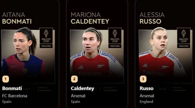 另外,西班牙球员卡尔登泰也有夺得金球奖的资本。卡尔登泰也是阿森纳的核心球员,她和鲁索一起帮助阿森纳拿下欧冠冠军。同时,她的数据也很漂亮:57次出场,打进23球助攻20次。