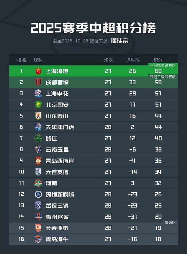 北京时间10月25日,中超联赛第28轮,长春亚泰在客场2-2遭天津津门虎绝平,未能逃离降级区。目前亚泰积19分排在联赛倒数第二。