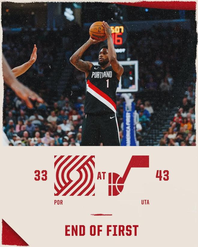 杨瀚森防挡拆时一直沉退,很容易被对手中距离跳投针对。爵士进攻火力凶猛,第一节打完,爵士43-33领先开拓者10分。爵士9人上场,8人得分进账。第二节风云突变,夏普连中三记三分。开拓者小个阵容下起三分雨,一举完成反超。