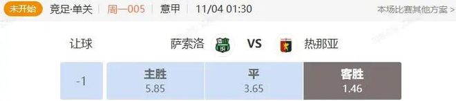本场比赛两支球队都是以保级为目标,萨索洛目前战绩上要甩开热那亚不少,加上球队历史地位也有,今天主场作战理应是被看好的,然而萨索洛面对垫底的热那亚今天还是显得让球无力,也是对热那亚的反弹比较忌惮,我认为今天热那亚很有机会客场拿分。