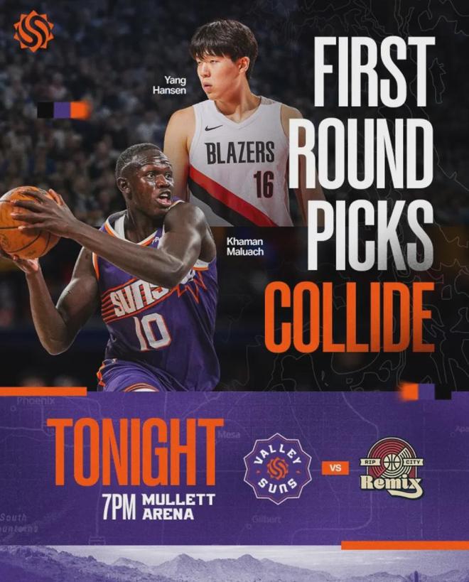 杨瀚森也不孤单,他在选秀时的好兄弟、今年首轮10号秀马卢阿奇也被太阳下放到了峡谷太阳,正好对位。
