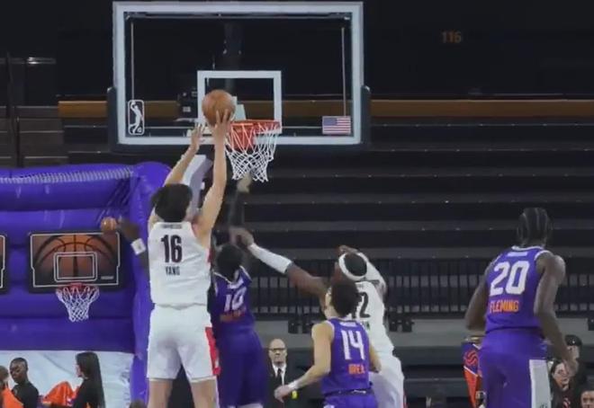 体能还不错的时候,杨瀚森完全跟得上,甚至可以完成在弧顶的持球突破扣篮,非常潇洒。