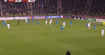 攻势不减的法国队,在第42分钟再次叩开了阿塞拜疆的球门,可惜埃基蒂克手球在先,导致凯夫伦图拉姆的进球,被主裁判无情吹掉,不过半场比赛结束之前,法国队还是扩大了领先优势,右侧角球开出后,造成阿塞拜疆球员自摆乌龙,高卢雄鸡带着3-1的优势,回到了中场更衣室。