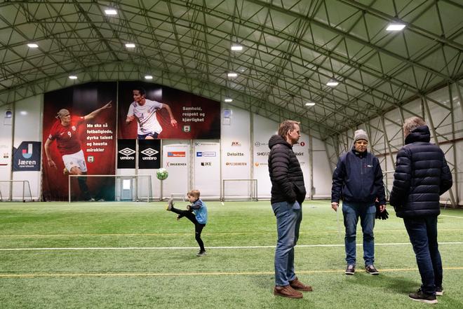 我们从耶尔哈伦(Jærhallen)开始,这是一座几年前重建的室内训练设施,因哈兰德(的意外到访而重新开放(当时在那里训练的当地孩子都不敢相信出现在他们面前的长发巨人真的是哈兰德)。建立这座室内球场的目的是为了让球员们能够在干爽的环境下进行训练,因为挪威的这个地区气候温和多雨。它每天都向所有人开放,供人们来磨练球技——而且是免费的。在里面,一名最近签约的来自尼日利亚的年轻球员正在大厅里来回奔跑,练习脚下。
