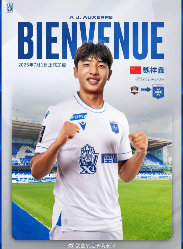 北京时间11月23日,法国欧塞尔足球俱乐部官方宣布,已与梅州客家足球俱乐部达成转会协议,梅州足球新星魏祥鑫将在年满18岁后与欧塞尔俱乐部签约,并于2026年7月1日起正式加盟球队。